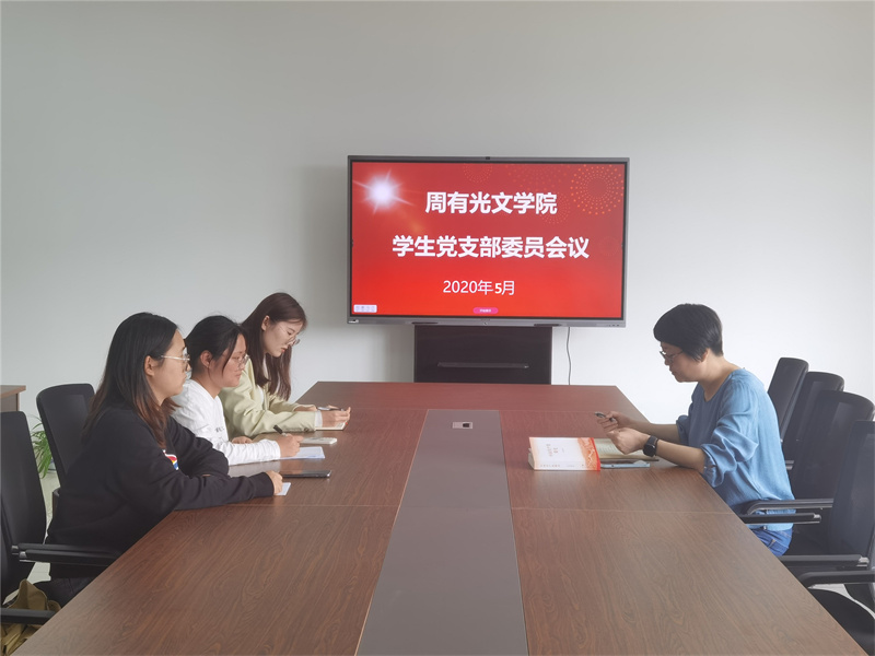 5月8日下午,富豪娱乐城 学生党支部在立言楼334会议室召开支委会,学生党支部书记杜焕、党员严佳丽、党员展望参加会议,会议由党总支书记焦洁庆主持。