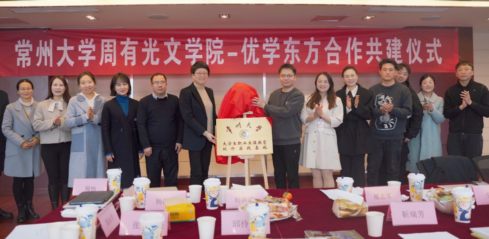 签约仪式上,董文康、于海阔代表双方签署了合作共建协议;焦洁庆、金乐共同为常州大学大学生职业生涯教育校外实践基地进行揭牌。