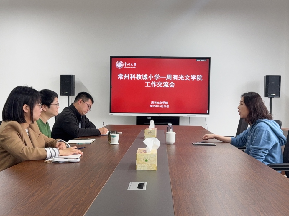 10月30日上午,常州市科教城小学校长卢赟赴常州大学富豪娱乐城 开展合作交流。富豪娱乐城 党委书记焦洁庆、副书记嵇炜、院长助理董文康、专业负责人靳瑞芳等老师参与座谈。