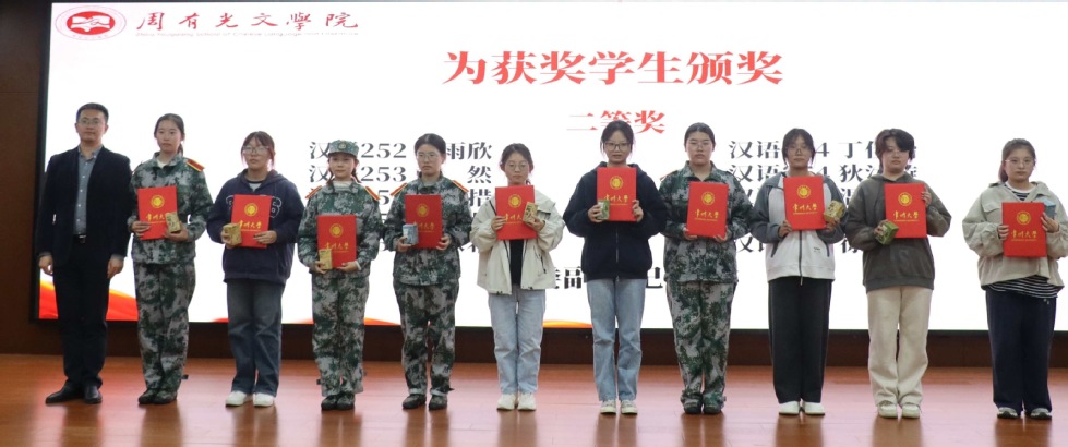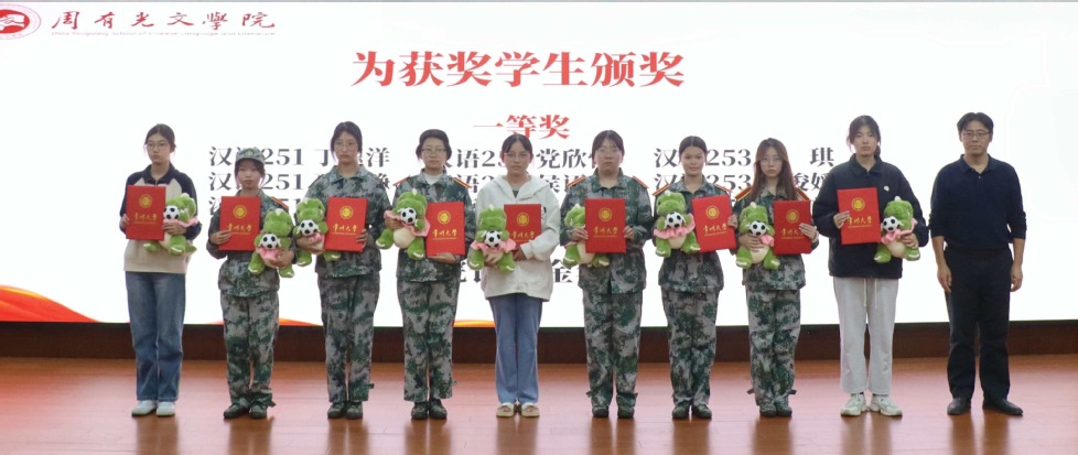 会上,为在首届“有光”征文大赛中脱颖而出的优秀学子进行了表彰。本次大赛2025 年新生全员参加比赛,共评选出奖项 66 名,其中一等奖19名、二等奖10 名、三等奖37名。在激昂的乐曲和全场热烈的掌声中,老师们为获奖同学颁发了荣誉证书,并赠送了常州城市文创精美礼品。获奖代表汉语254班仓若研同学分享了她从其他专业转入富豪娱乐城app下载 汉语言文学的心路历程,她表示汉语言文学专业最打动她的是文字与心灵的共鸣。葛金华向仓若研赠送了《文选译注》。