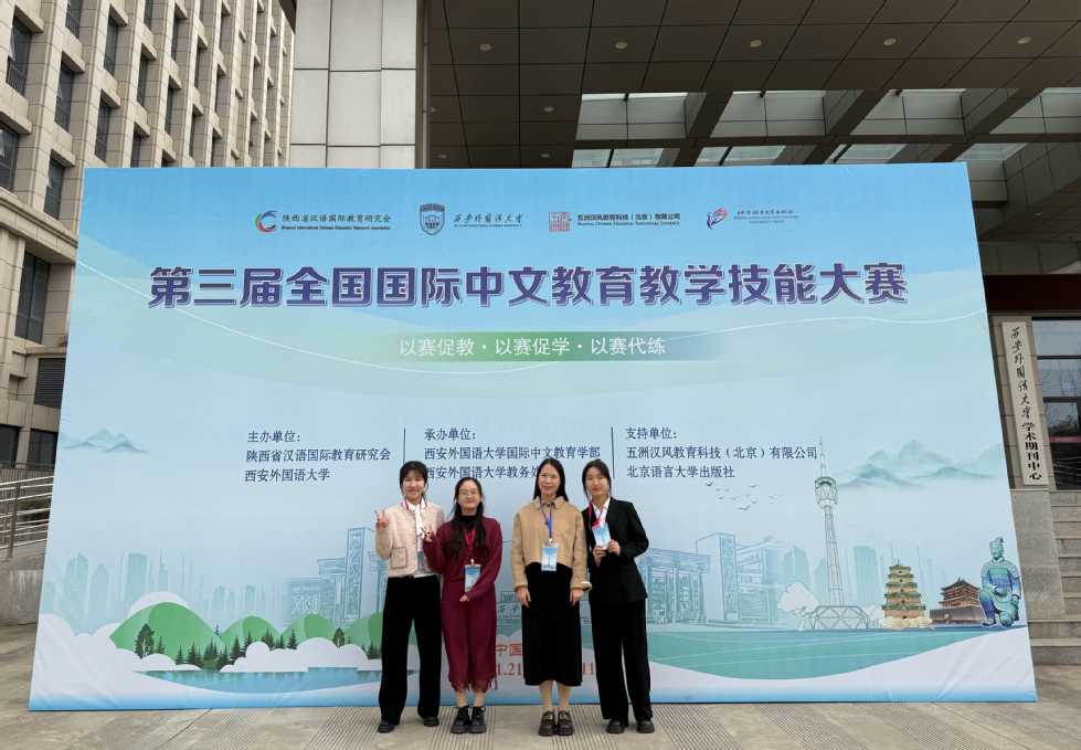 2025年11月22日至23日,第三届全国国际中文教育教学技能大赛在西安外国语大学长安校区举行。富豪娱乐城app下载 选派2025级国际中文教育专业研究生林欣慧、张欣怡、祁成璐参赛。三位同学凭借扎实的专业基础和出色的教学表现,与来自全国多所高校的优秀选手同台竞技,最终均荣获研究生组优秀奖。这也是富豪娱乐城app下载 研究生首次参与此类全国性赛事。现场比赛由辅导员张燕红老师带队参加。