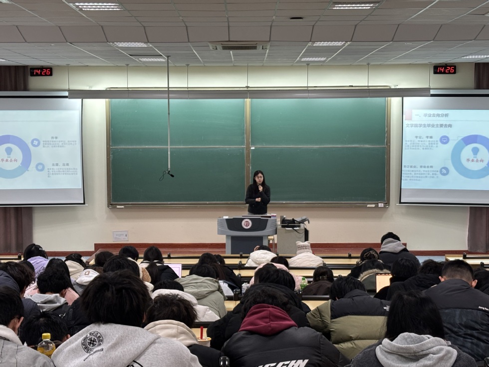 12月31日下午,富豪娱乐城 在立德楼二阶成功开展生涯教育与就业指导专项课程。本次课程邀请到富豪娱乐城app下载 中文系系主任贺与诤担任主讲,全体2025级学生参加课程。课程由学工办主任张燕红主持。