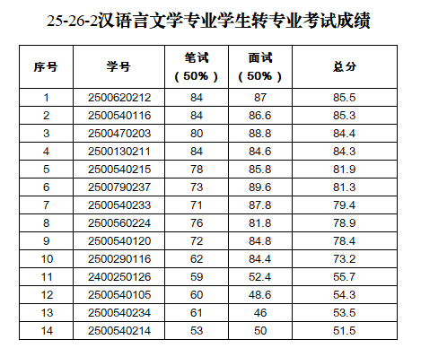 25-26-2学期富豪娱乐城 转专业考核成绩公示